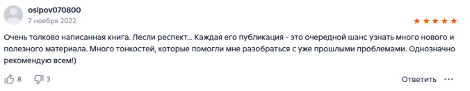 Читаю сейчас твою книгу, до этого читал парочку по этой тематике других авторов, в общем твоя настолько интереснее, понятнее и правдивее, что я за день уже 160 страниц прочел в запой. Что самое интересное, так это то, что те знания, которые ты даёшь, они как будто уже у меня были где-то в глубине подсознания, на инстинктивном уровне, но за туманной пеленой, а твоя книга и советы помогают эту пелену развеять. Спасибо тебе огромное за твой труд и старания, ты действительно помогаешь изменить жизнь к лучшему.